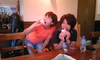 写真は今回急遽、一緒にすること作人さんと、差し入れの饅頭で‥